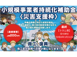 【石川県商工会連合会】 小規模事業者持続化補助金【災害支援枠(令和6年能登半島地震等)】第9次公募の受付が開始されました